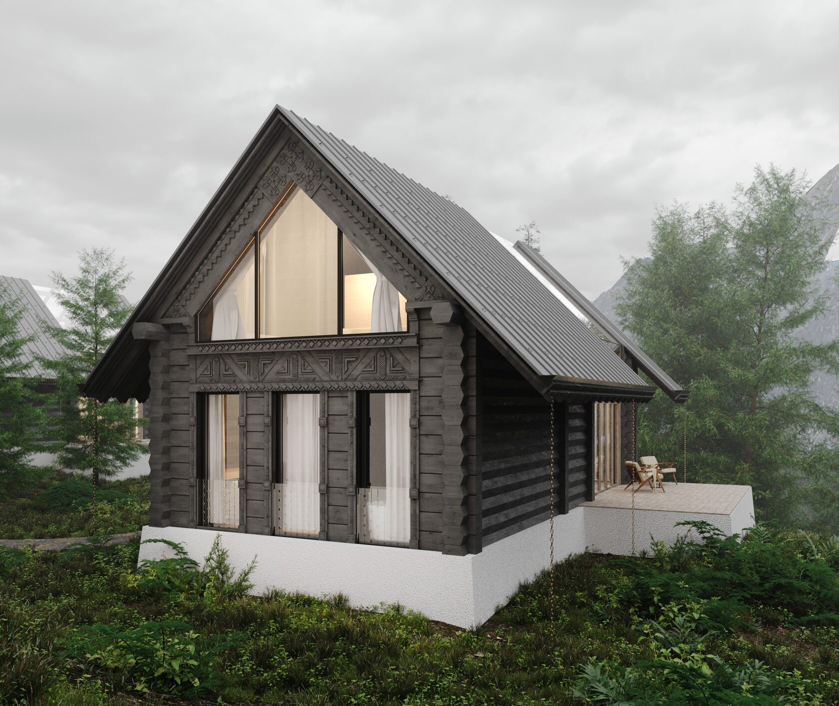 На первый взгляд дом кажется лаконичным, но при более внимательном рассмотрении становится заметна тонкая и кропотливая работа — резьба по дереву вокруг окон и на фасаде выполнена с ювелирной точностью, отражая глубокое уважение к архитектурным традициям.